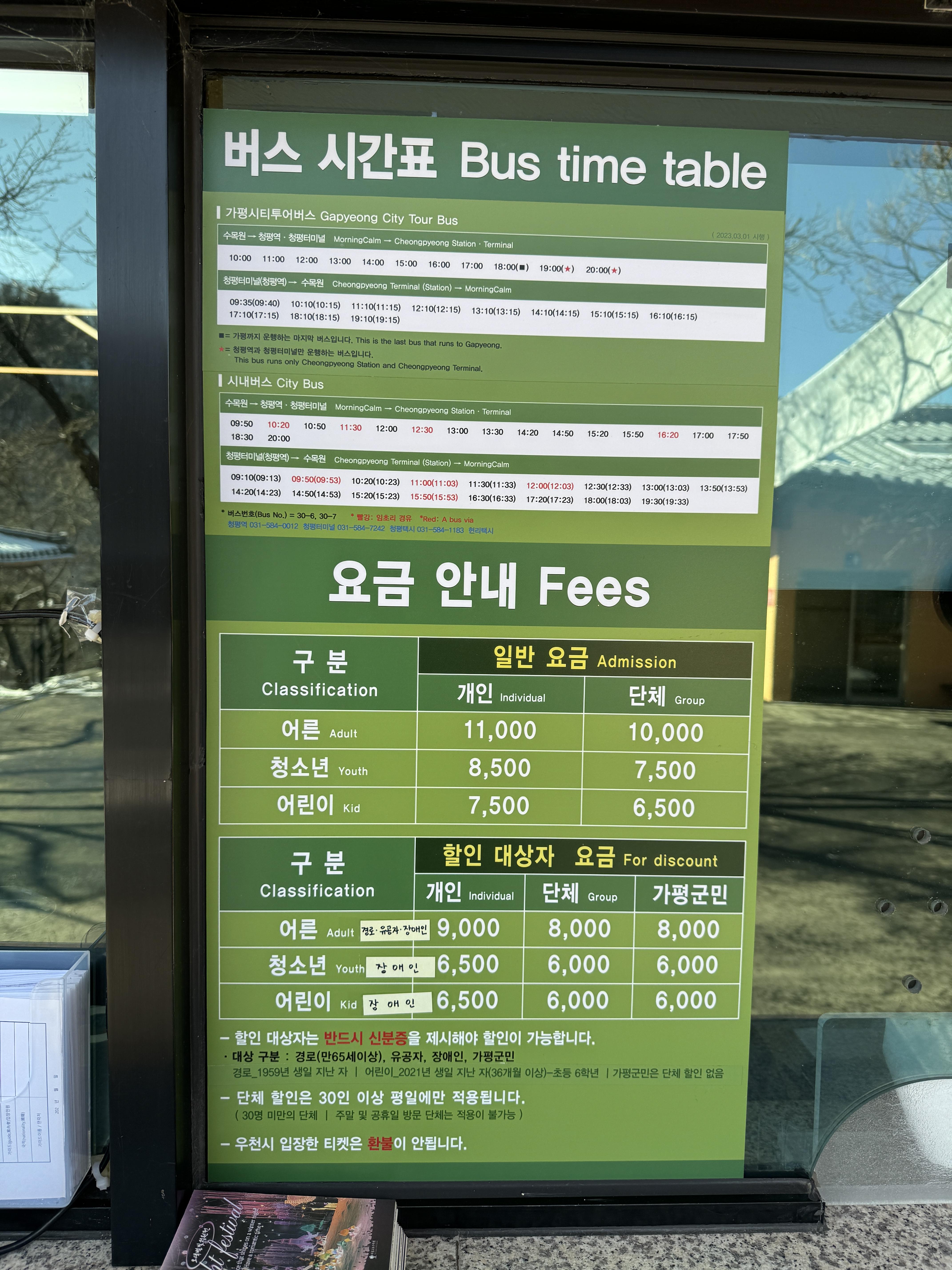 가평 시티투어 버스 시간표 &  수목원 입장 요금 안내