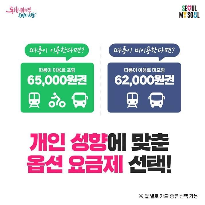 충전금액 - 65,000원 / 지하철, 버스, 따릉이