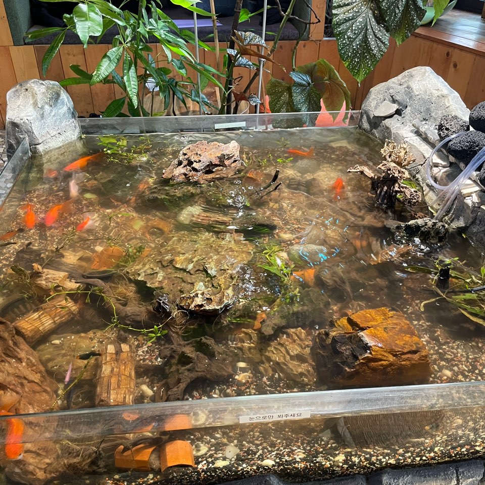 수족관이 있어서 금붕어들이 자유롭게 놀고 있습니다. 가만히 금붕어를 쳐다보는것도 힐링이 되네요.