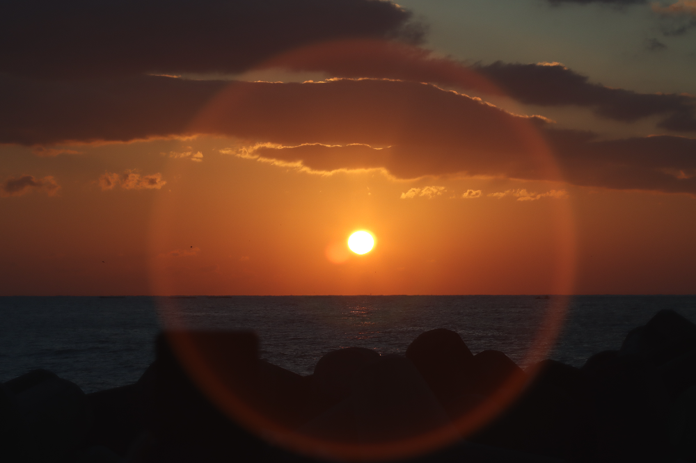 일출을 보러 많은 사람들이 왔지만 겨우 찍었습니다.