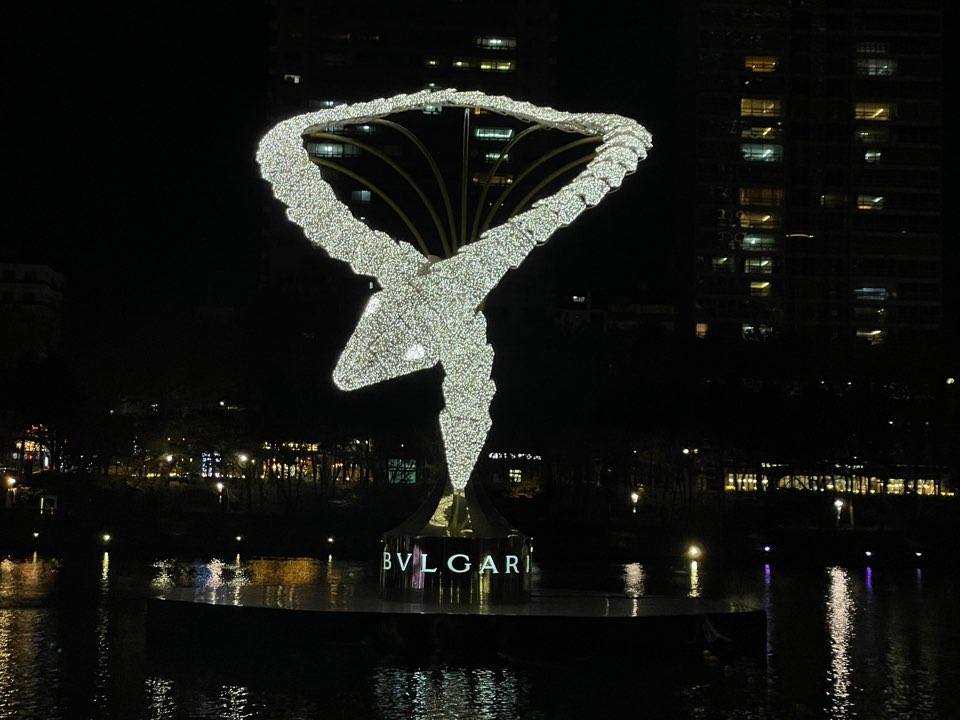 롯데월드몰 앞에는 다양한 조명이 사람들의 발길을 잡고 있습니다.