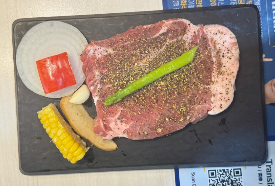 새로 나온 신메뉴 스테이크도 구워 먹습니다.