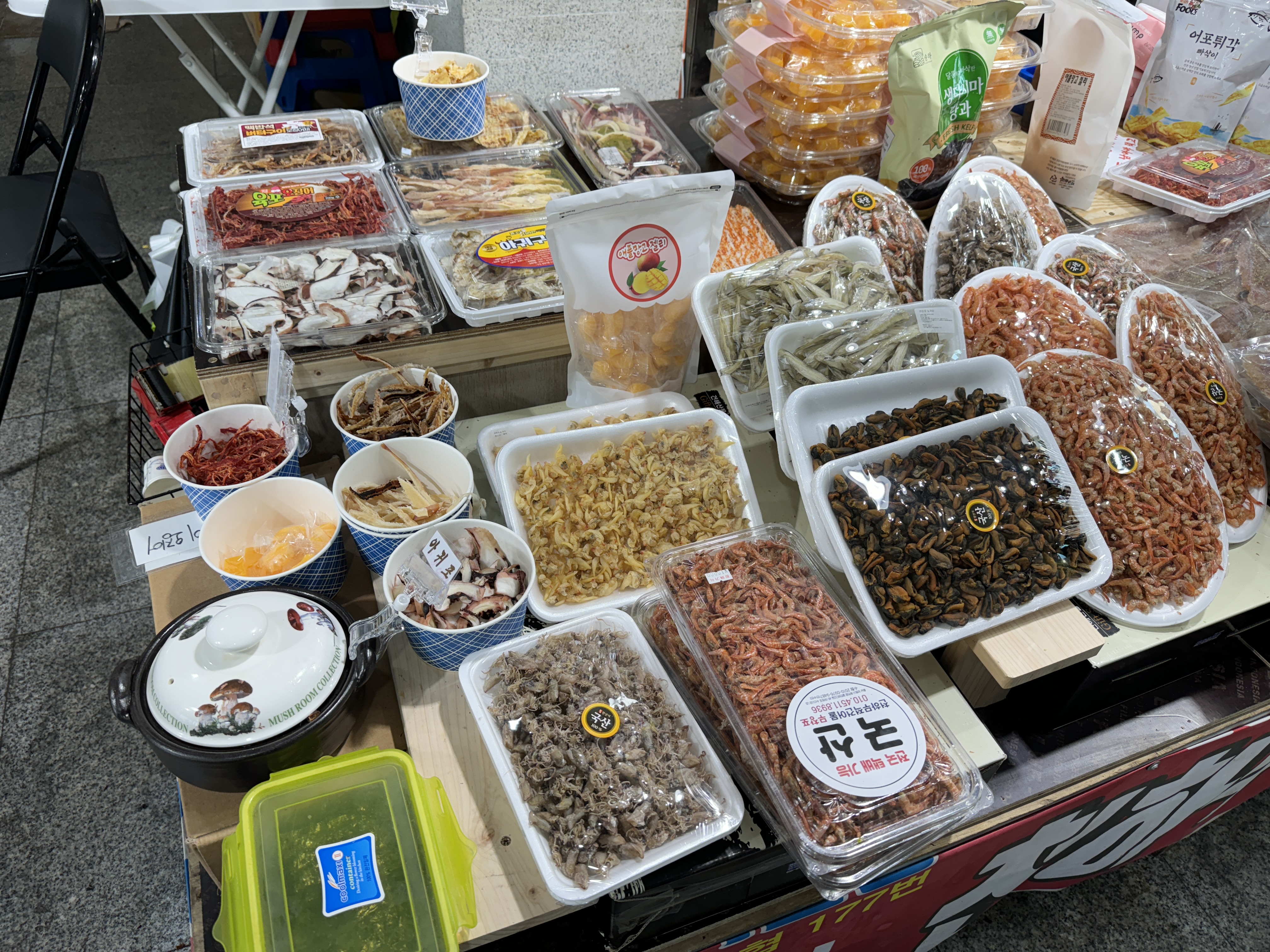 물가가 많이 올랐지만 건어물 가격이 착하네요. 주인 이모도 손이 큰입니다. ㅎㅎ 직접 시식해서 먹어 보고 사가세요!