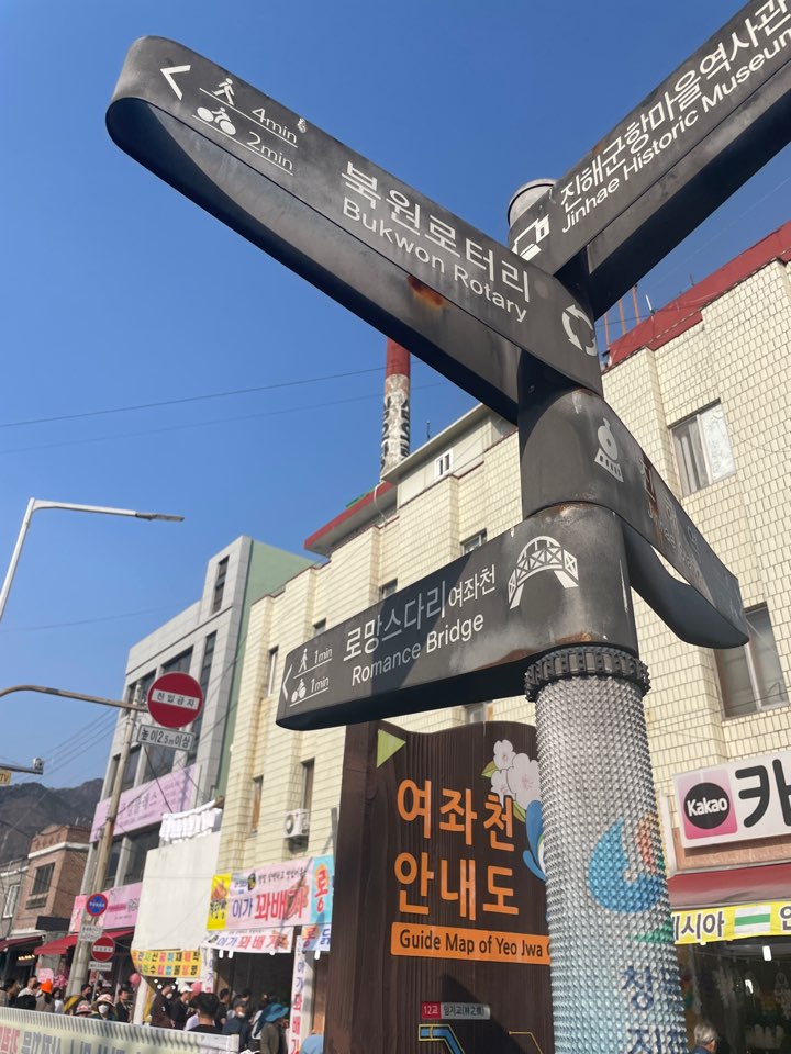 장복산 조각공원 -> 진해내수면환경생태공원 -> 여좌천(로망스다리) -> 해군사관학교 -> 제황산공원 -> 경화역 -> 안민도로