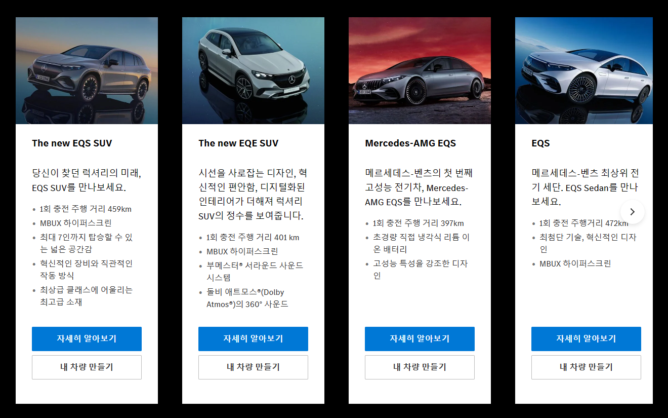 전기차 라인업 (EQA, EQB, EQE, EQE SUV, EQS, EQS SUV)