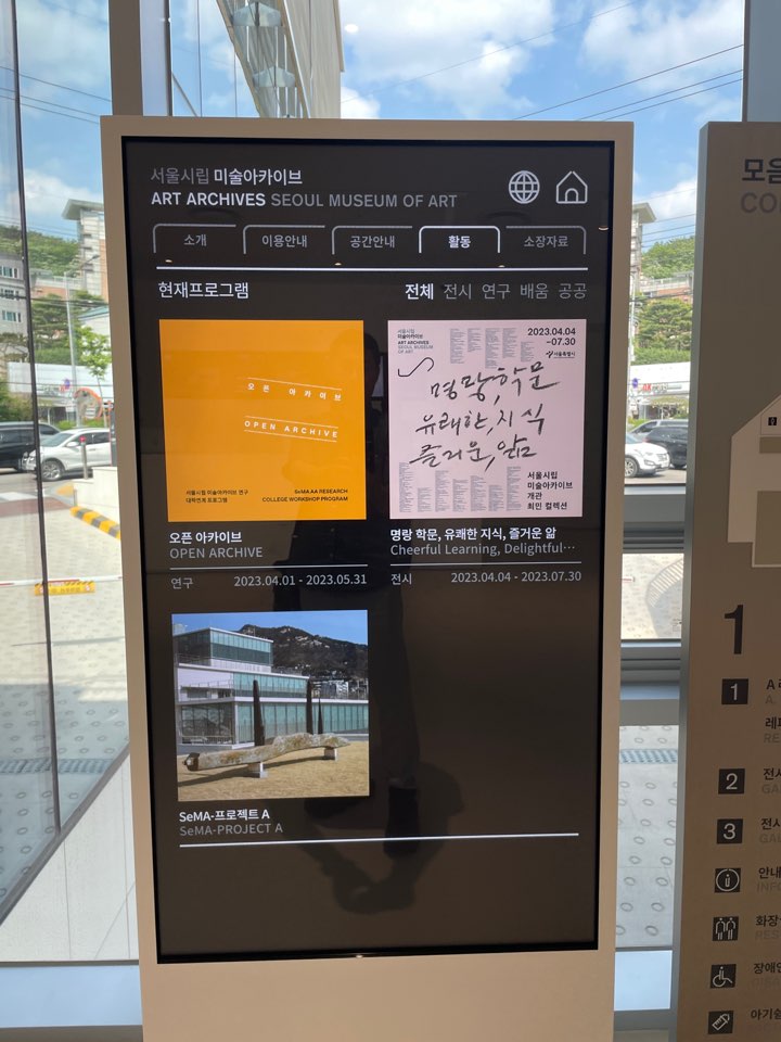 한쪽 벽면에는 서울시립미술아카이브 소개 영상이 나온다.  건물이 많아서 시간을 두고 여유 있게 관람하는 것을 추천한다.