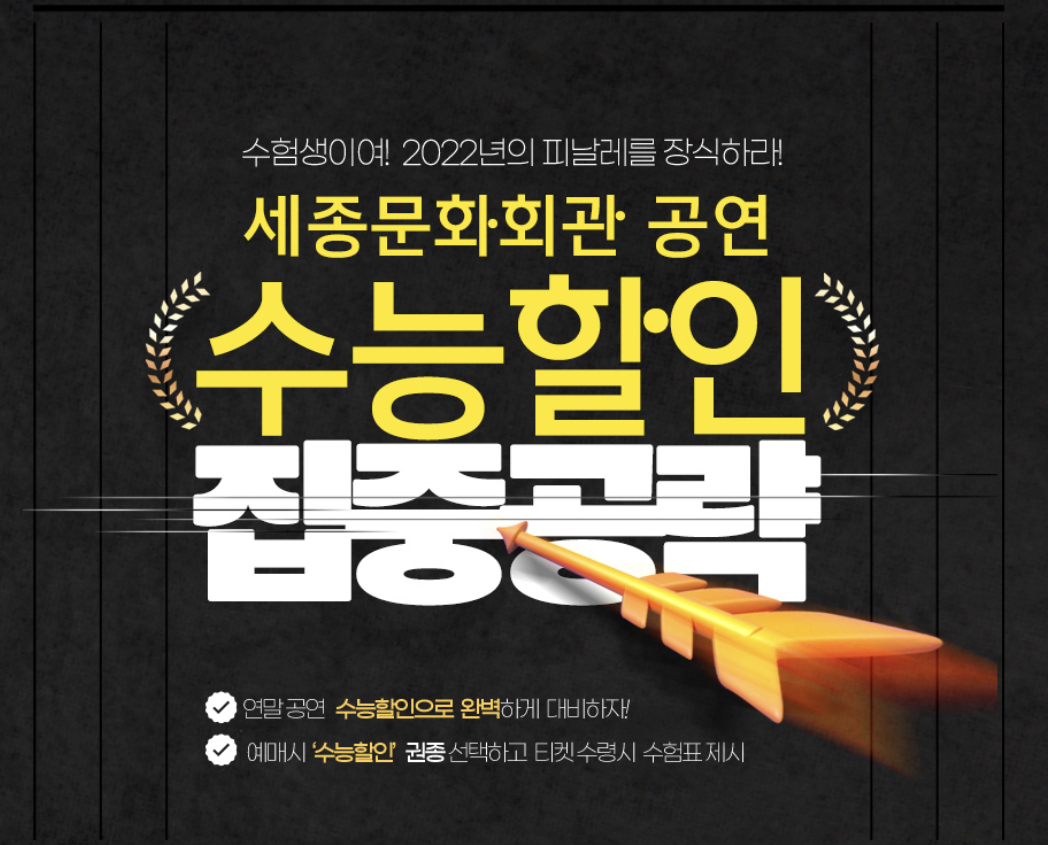 기간 : 12월 15일까지 (화, 수, 목 평일 공연) 수험생 본인만 할인 티켓 50%