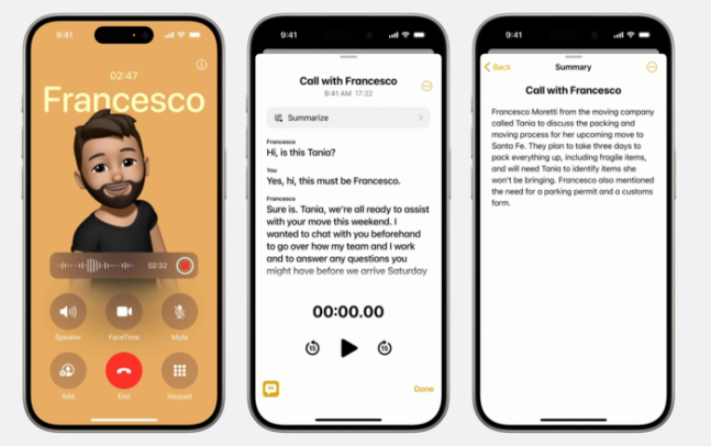 애플 통화 녹음, 요약 서비스는 통화 중 녹음을 시작하면 자동으로 녹음 사실을 안내한다. 드디어 통화 녹음 기능이 아이폰에 들어오네요! 기대가 되는 통화 녹음 AI 기능이 애플 아이폰에서 되네요.