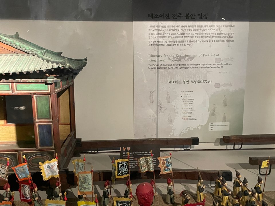 한양에서 전주까지 어진을 어떻게 모시고 왔는지 설명을 해줍니다. 태조어진 봉안 여정도를 잘 만들어 놔서 아이들이 집중력이 있게 봅니다. 청소년이나 어른들에게도 역사를 잘 배울 수 있도록 교육용으로 잘 만들어 놨습니다.