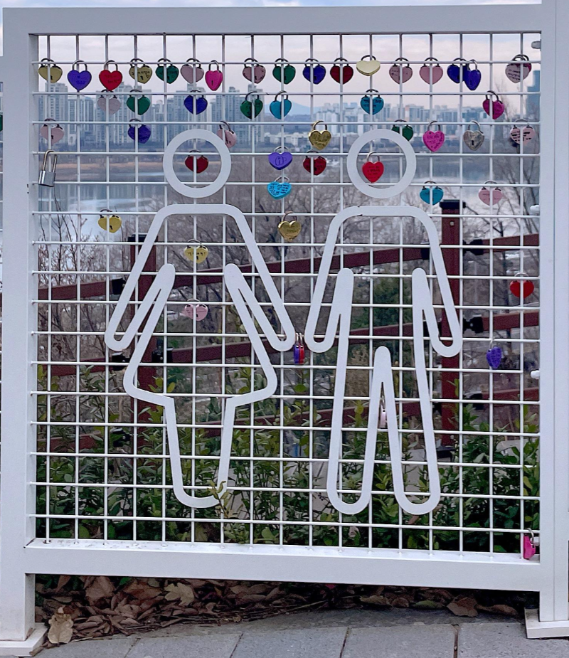카페에서 자물쇠를 팔고 있습니다. 연인들의 사랑, 친구들의 우정을 남기기 위해서 자물쇠를 채워놓고 있네요.