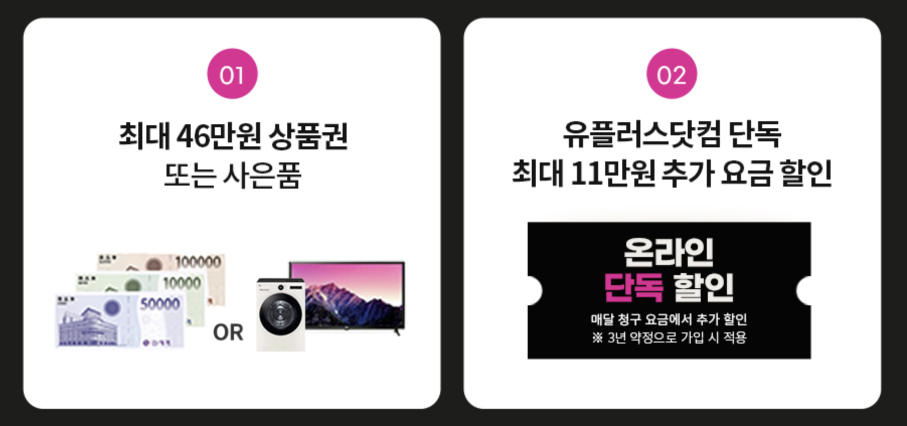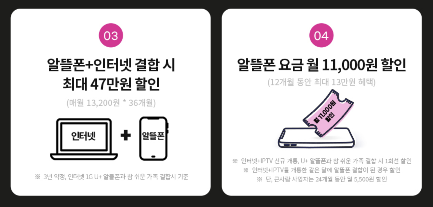 결합 혜택이 대단하네요! 이번기회 통신사를 바꿔보면 좋을것 같습니다.