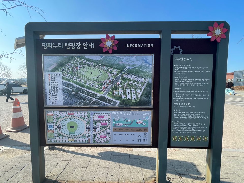평화누리 캠핑장은 예약 등록한 차량만 진입이 가능합니다. 평일이어도 카라반이 다 찼네요. 겨우 예약을 하고 왔습니다.