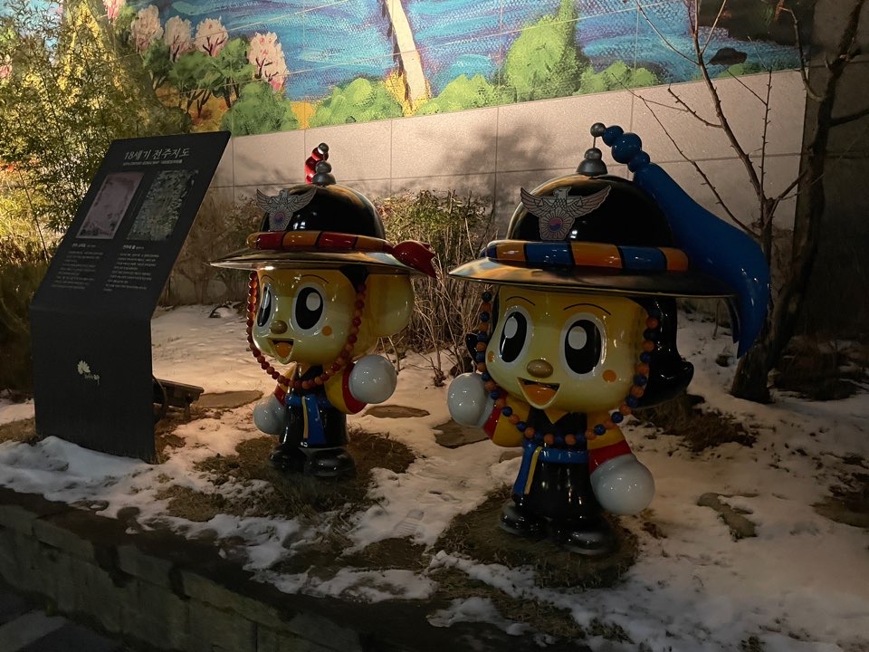 한옥마을 입구에 카카오 프렌즈 친구들이 많이 있네요.