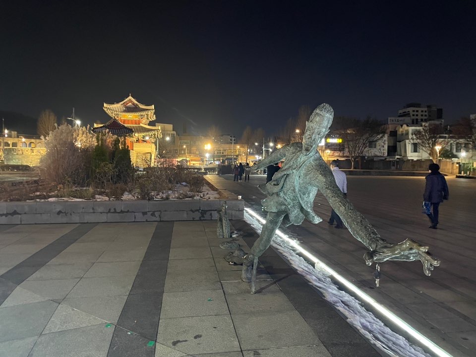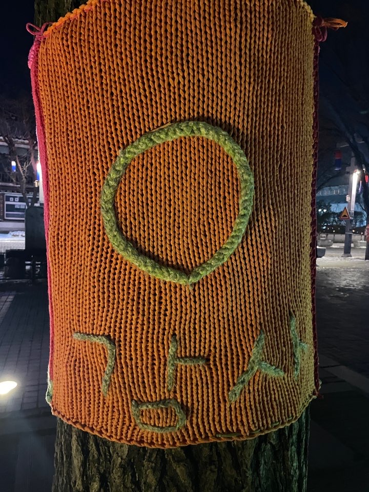 평화의 소녀상도 있습니다. 추운 겨울 목도리를 하고 의자에 앉아 있습니다.