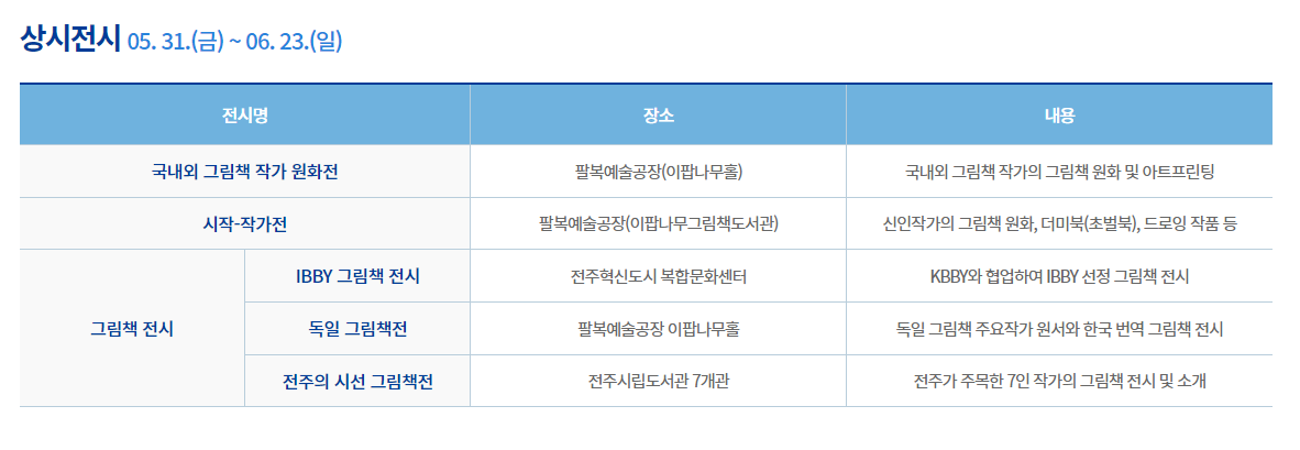 일시 : 06.04. ~ 06.21. 장소 : 전주시립도서관, 팔복예술공장, 전주혁신도시 복합문화센터, 지역서점