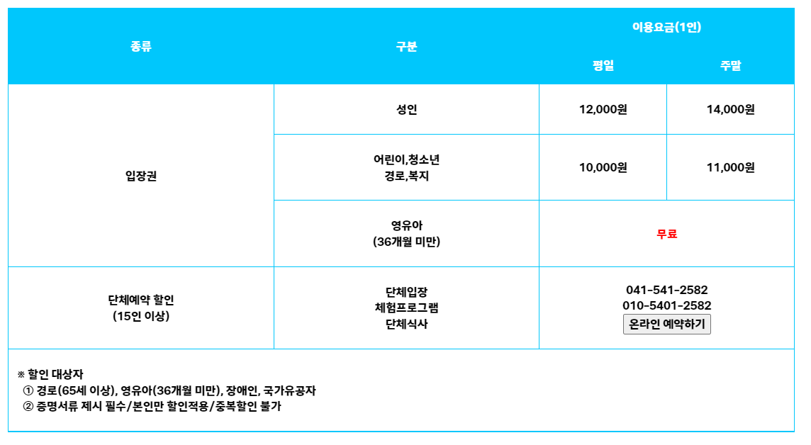 단체 예약 할인 문의 - 041-541-2582