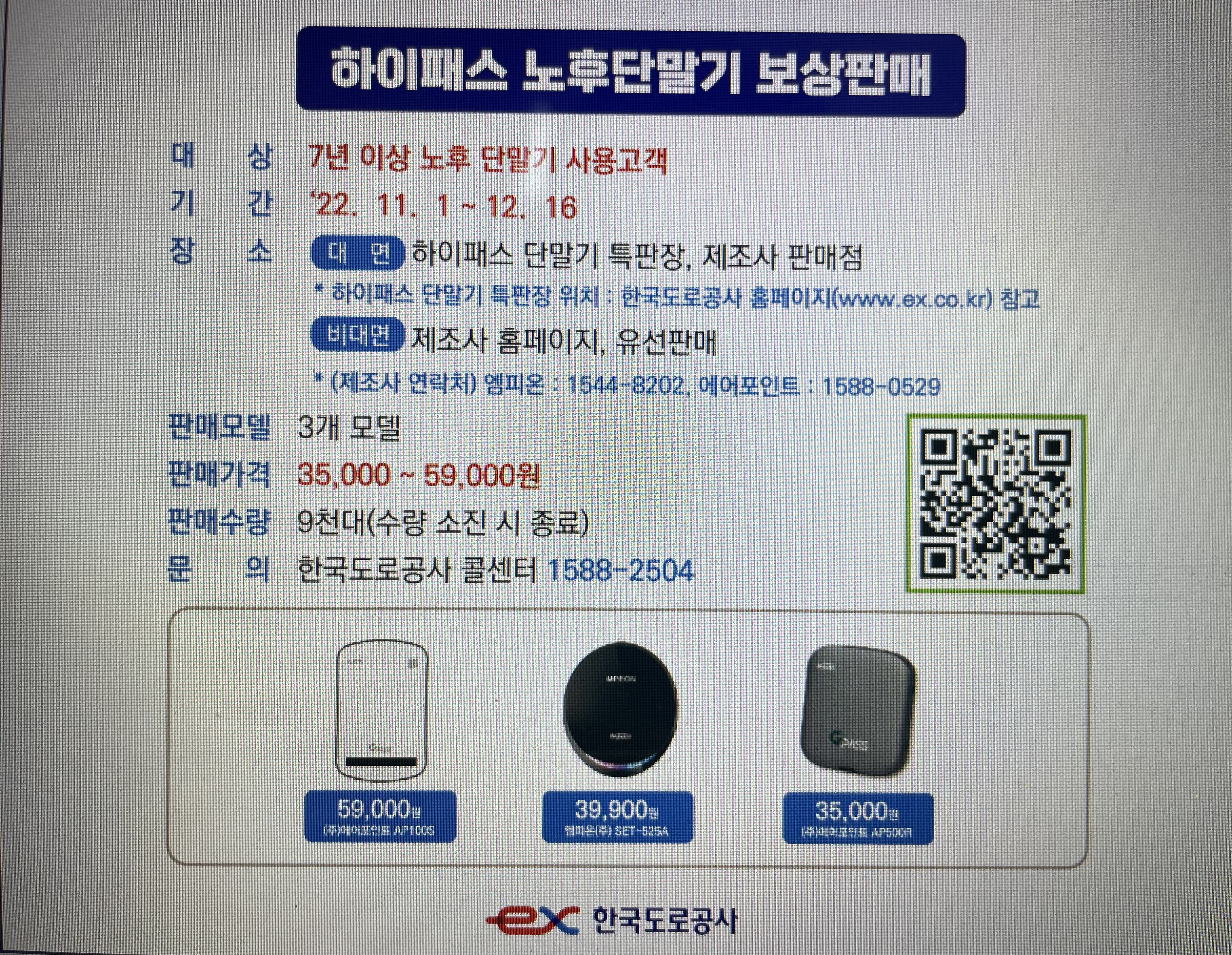 (하이패스 단말기 특판장 위치 : 한국도로 공사 홈페이지 www.ex.co.kr)
