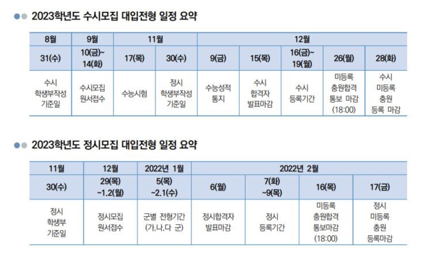 수능 예상 등급컷 및 정시 원서접수 일정(2023년)